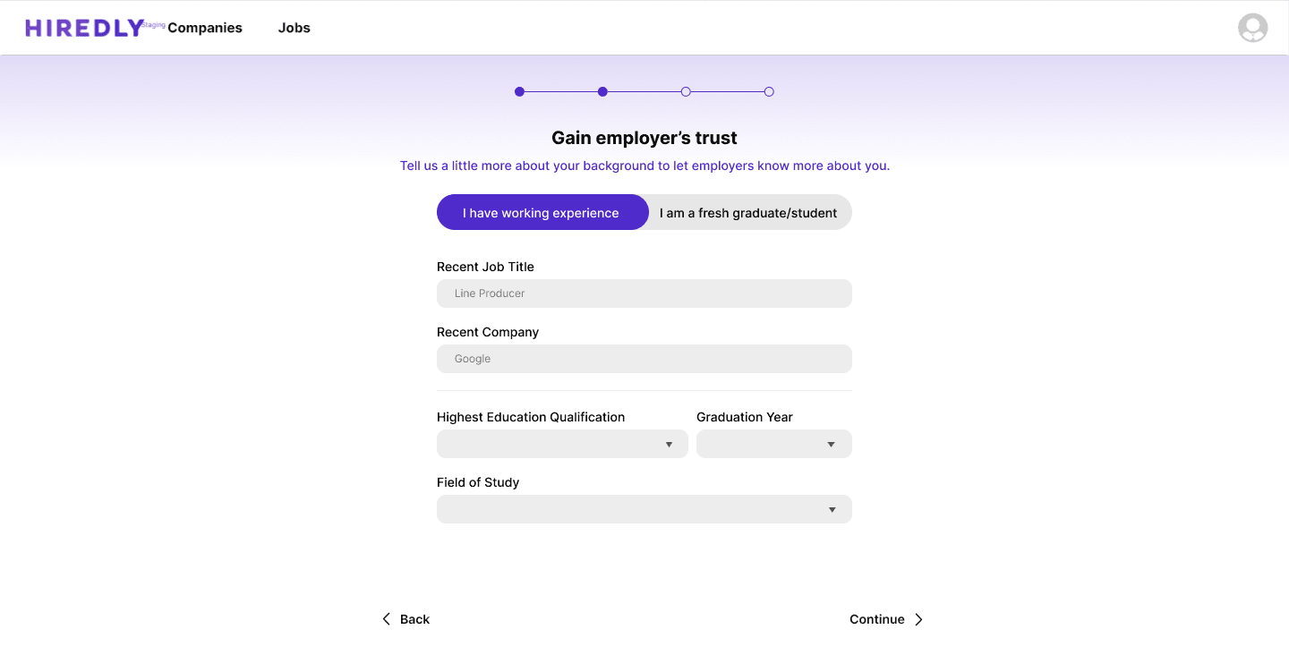 General comments from users after going through Linkedin and Indeed's Onboarding: