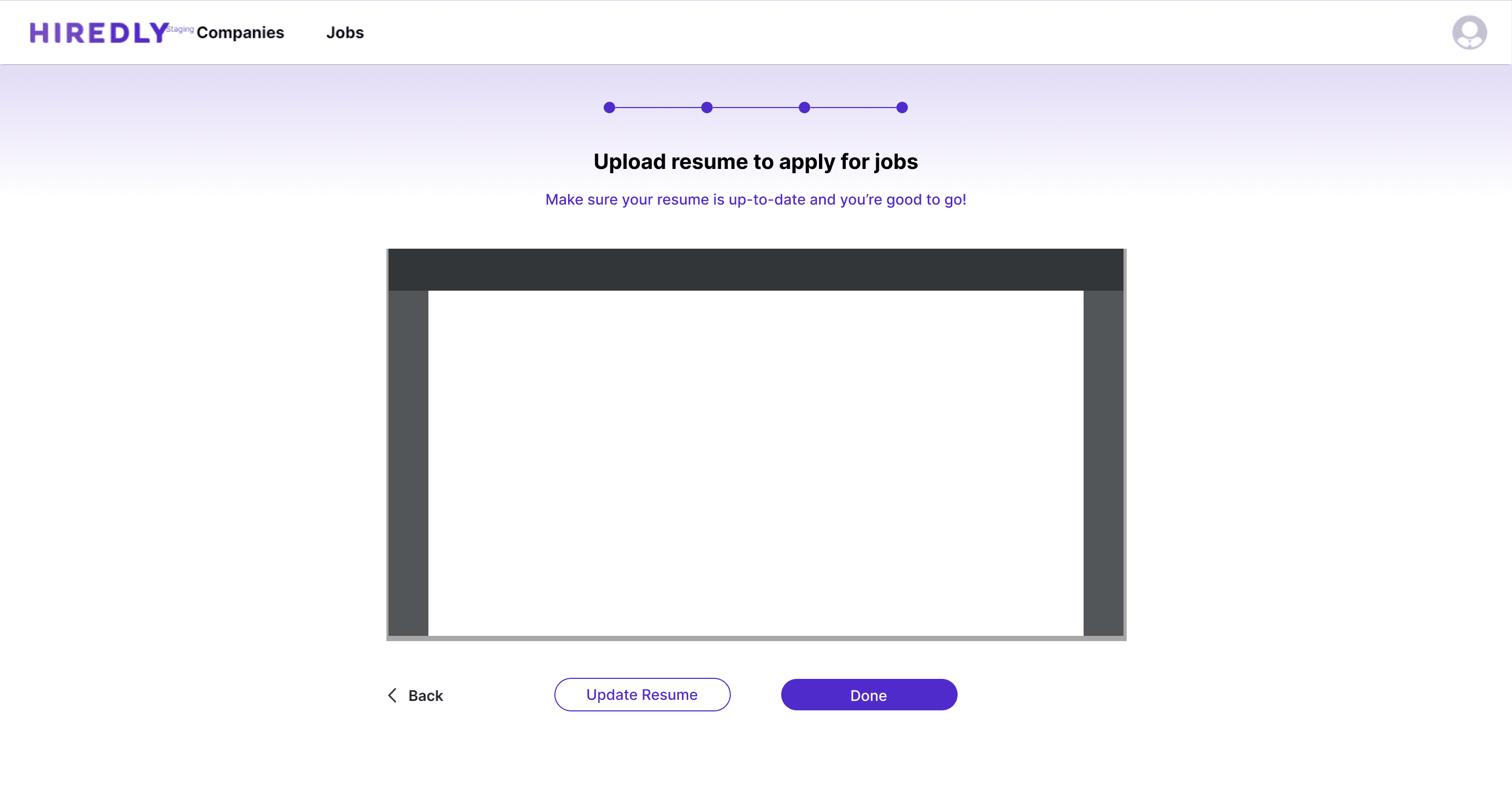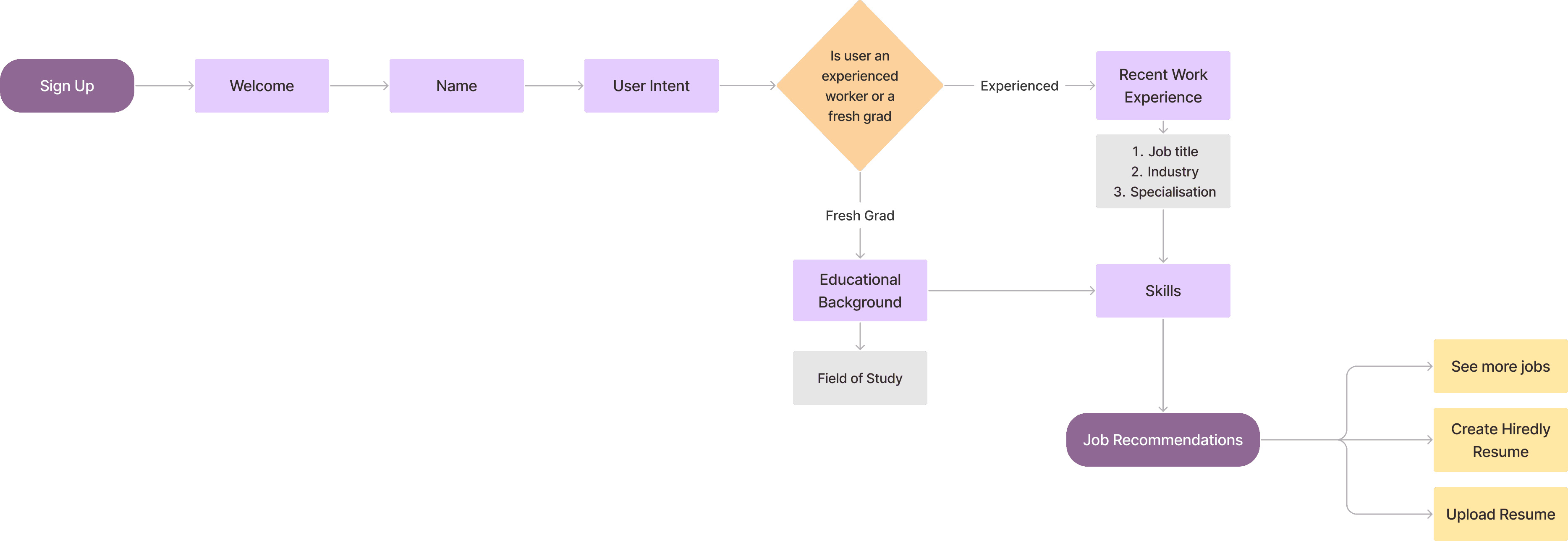 However the new additional fields made the journey much longer even with the one field per page approach. The reward at the end is a nice touch, but there’s too many action options for users to make: view recommended job, create resume, upload resume. Yet it’s still missing the main user goal.... Searching for jobs!